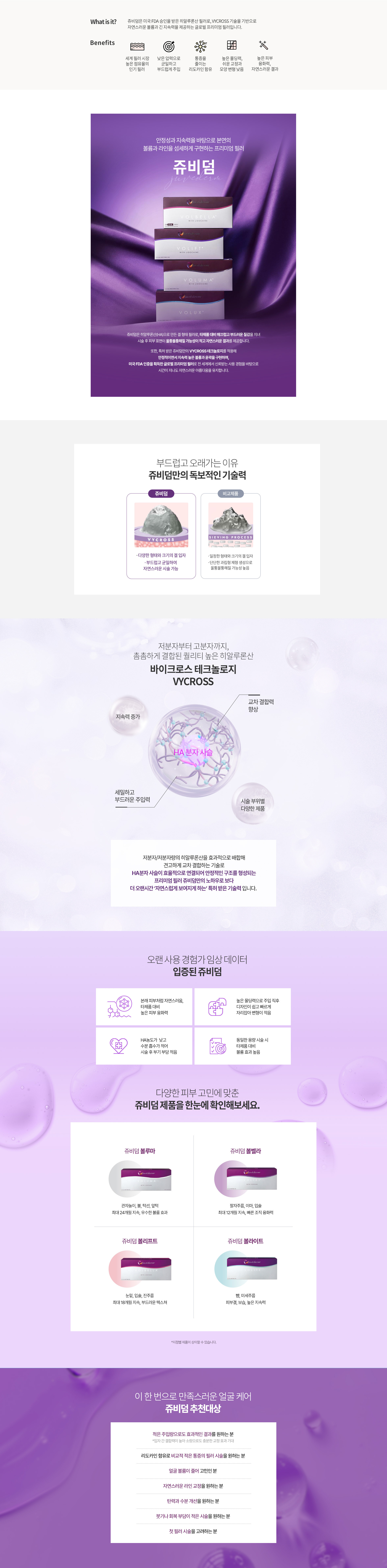 쥬비덤만의 Vycross™ 기술로 안정성 · 자연스러움 · 지속력을